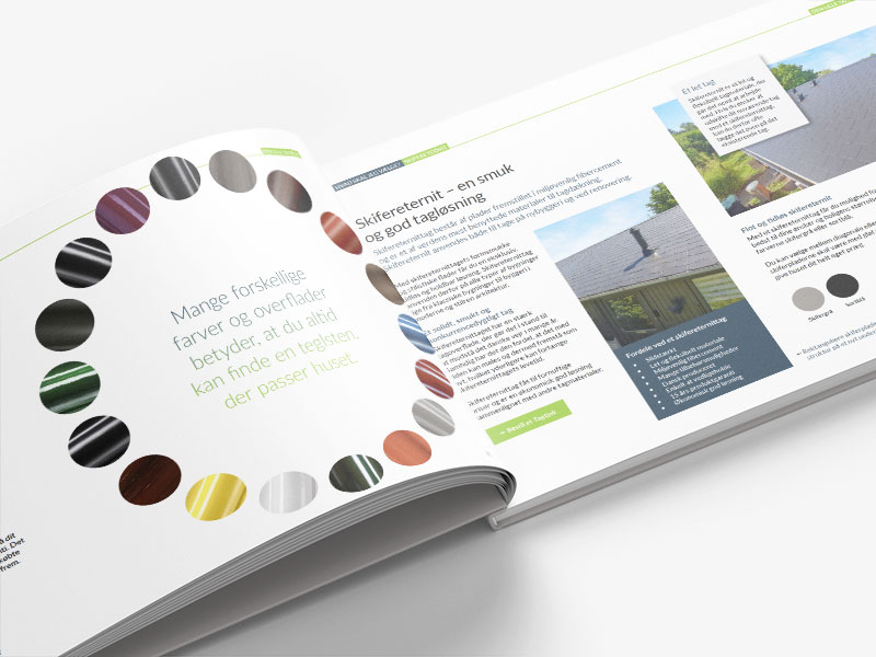 Den lille tagbog giver dig overblik over dine muligheder, når du skal vælge tagtype, tilbehør, overflade og farve mm.