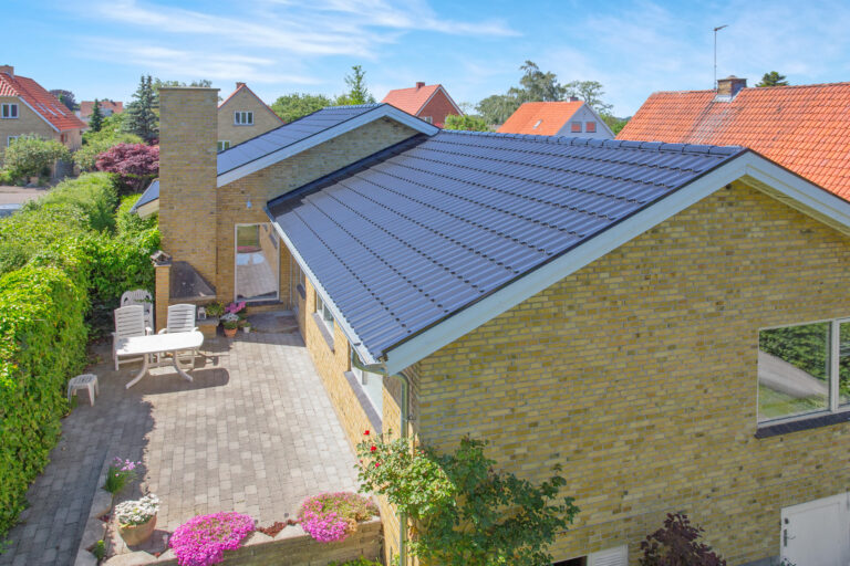 Villaen i Holmegaard fik lagt nyt Decra Elegance tag i farven sort silkemat. Der blev samtidig monteret nye Icopal metaltagrender. De stærke (Decra...