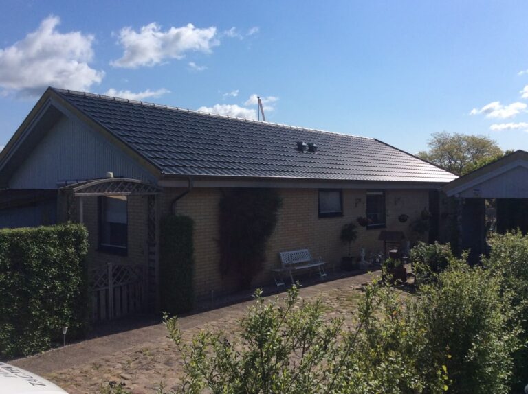 Nyt Decratag blev monteret, taget blev monteret på det eksisterende eternittag, der blev også monteret nye metal tagrender. Taget blev lagt på 4...