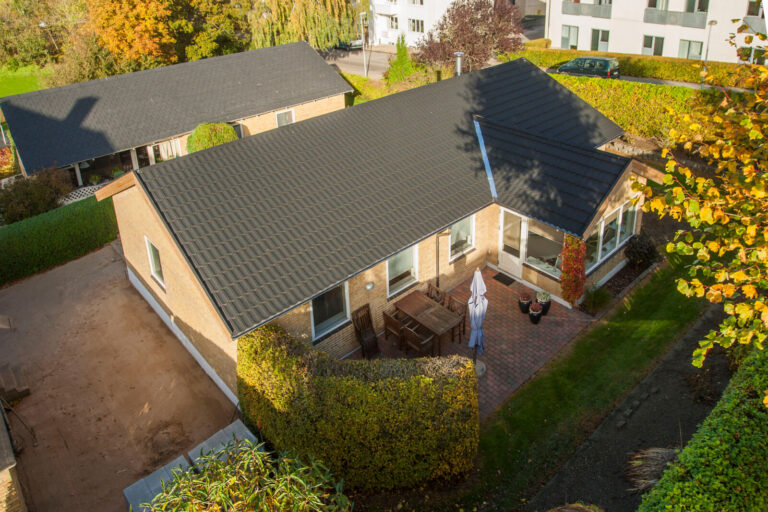 Villaen i Holmegaard fik lagt nyt Decra Elegance tag i farven sort silkemat. Der blev samtidig monteret nye Icopal metaltagrender. De stærke (Decra...