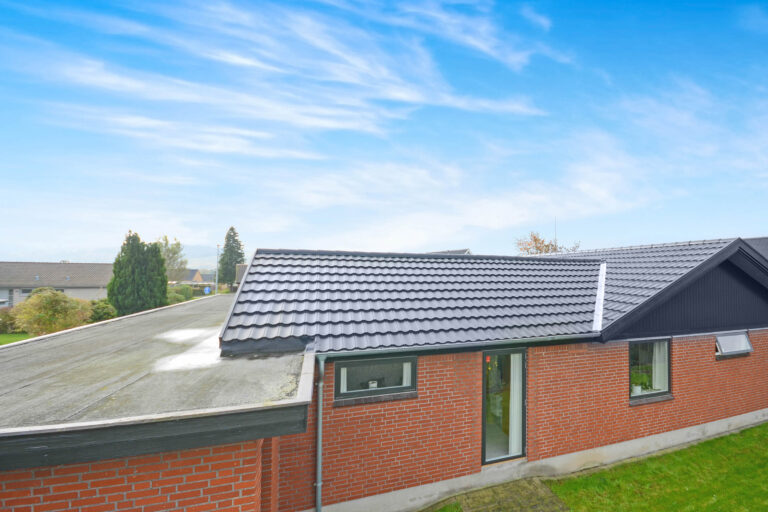 Med udsigt til skov og skønne marker, skiftede vi det gamle tegltag ud med lækkert Decra sort mat. Vedligeholdelses frie sternbrædder og vindskeder...