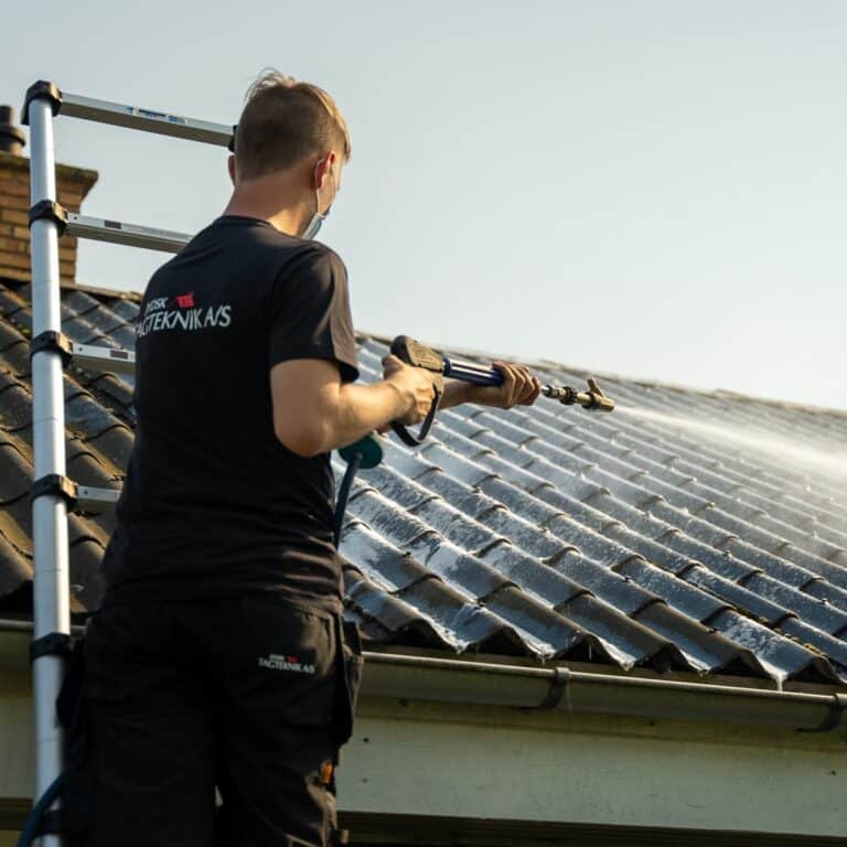Gælder huse på fastland og brofaste øer med et tagareal på op til 300 m² og maks. 4 meter til tagrenden. Er dit tag større eller højere, finder vi en god pris til dig. Kontakt os på alge@jydsktagteknik.dk.